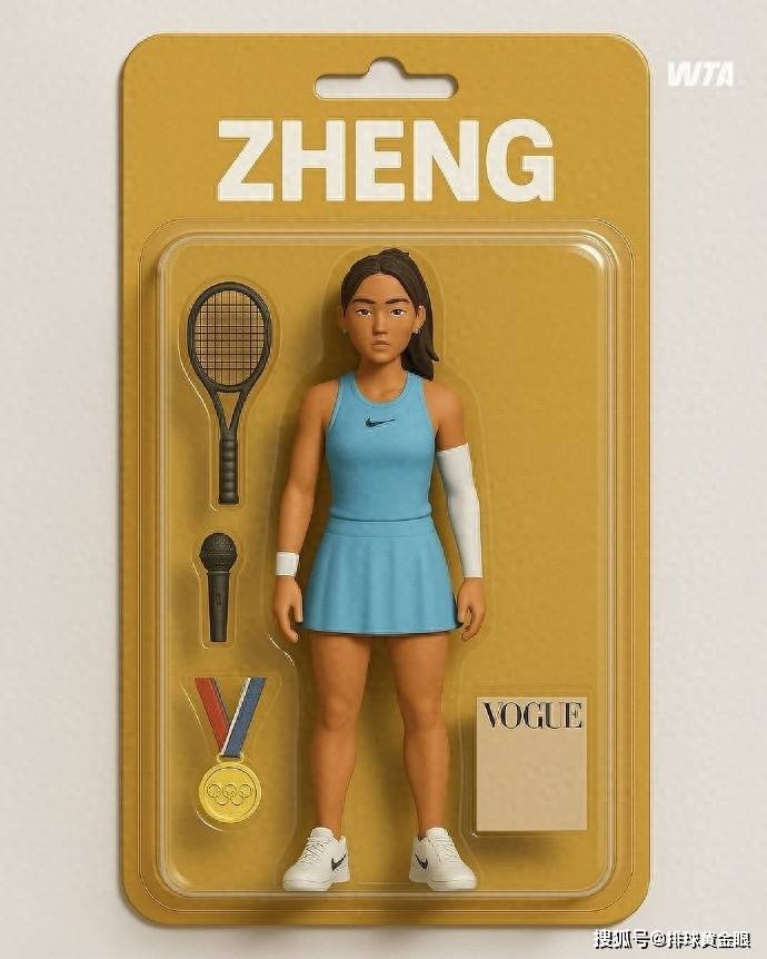 在休赛期,WTA官方发布了一则用AI制作的球员模型手办。除了复刻出各位球员的样貌外,WTA还为各位球员配备了一些经典元素的小配件。比如中国一姐郑钦文手办的旁边就摆上了奥运金牌、麦克风和Vogue杂志,完美诠释了“郑钦文” 场外的多元形象。
